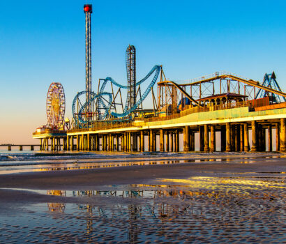 メキシコ湾に突き出す桟橋に広がるガルベストン・プレジャー・ピア。絶景アトラクションと映画『フォレスト・ガンプ』公式レストランが楽しめる、家族連れにも人気のスポットを紹介します。