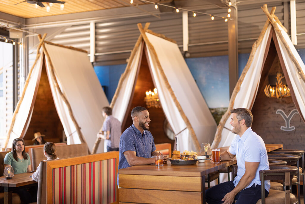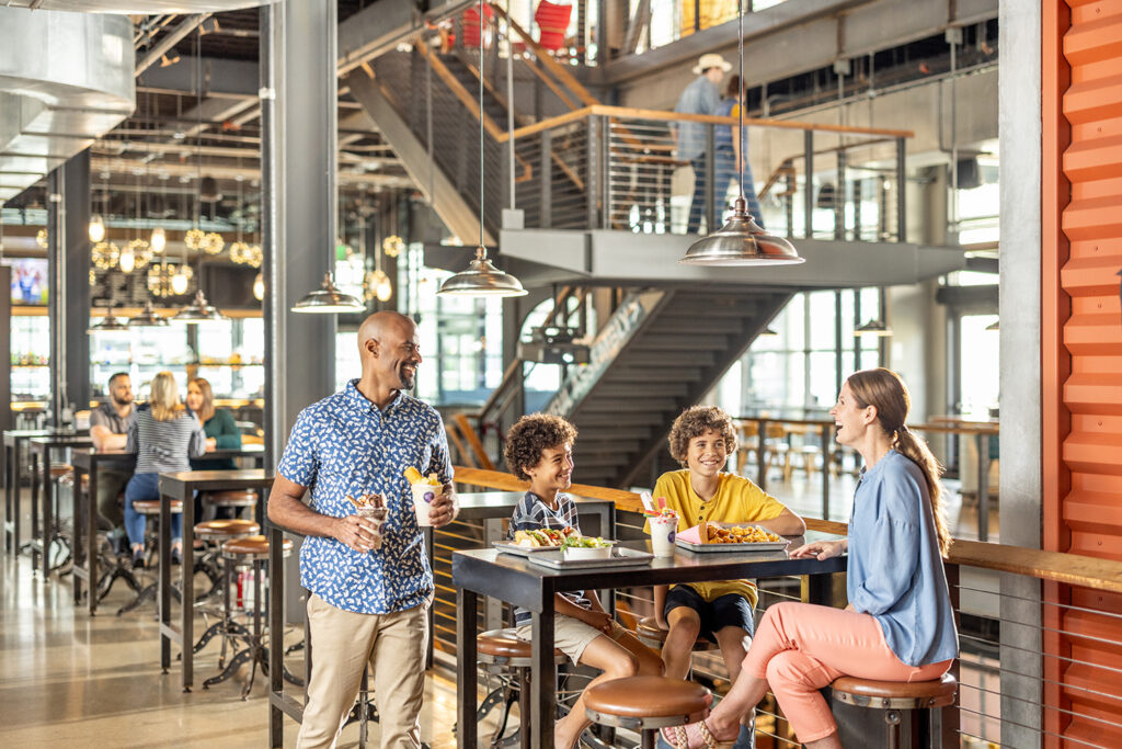 レガシー・ホールの建物は3階建てで、館内には約20店舗の飲食店が並びます。いわゆるフードコートとは異なり、ジャンルやスタイルの異なる店を、その日の気分や時間帯に合わせて選べるのが特徴です。テキサスらしい料理から各国のメニューまで幅広く揃い、短時間で食事を済ませたいときにも、ゆっくり腰を落ち着けたいときにも対応できる柔軟さが、この場所の魅力です。