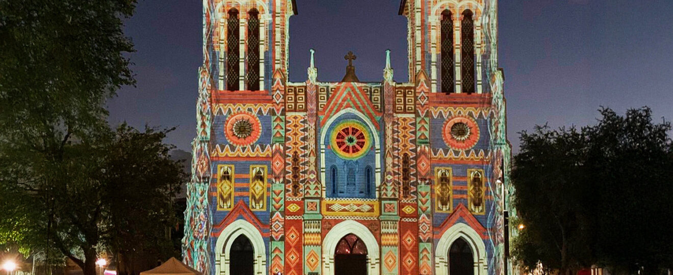 日が暮れると、この歴史的な大聖堂のファサードが巨大なスクリーンへと変わります。世界的映像アーティスト、ザビエル・ドゥ・リシュモン(Xavier de Richemont)によって制作された「San Antonio | The Saga」は、サンアントニオの300年以上にわたる歴史を約24分間に凝縮し、光と音で描く壮大なプロジェクションマッピングです。先住民の時代からスペイン植民、メキシコ支配、アメリカ編入、そして現代の多文化都市としての姿まで――その物語が色鮮やかな映像と音楽によって建物全体に投影されます。教会の建築そのものが映像の一部となり、迫力と感動を体験できるライトショーです。上映は無料で、週に数回、午後9時から開催されています(天候などにより変更の場合あり)。上映スケジュールは公式サイトで事前に確認しておくのがおすすめです。