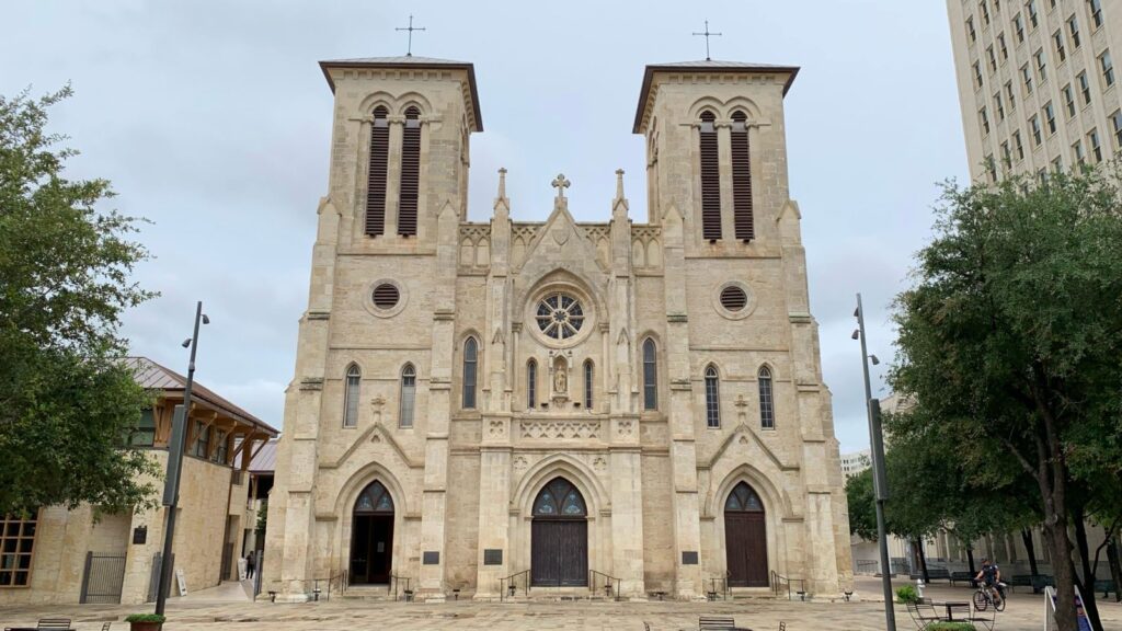 信仰の拠りどころであると同時に、この大聖堂はテキサスの歴史の重要な舞台にもなりました。テキサス革命の際にはメキシコ軍の大砲が設置され、テキサス側の勝利の後には勝利の旗が掲げられたと伝えられています。洪水や火災、戦禍に見舞われながらも、その都度修復・改築が行われ、19世紀中頃にはゴシック・リバイバル様式のファサードが追加され、現在の姿になりました。1874年にサンアントニオ教区が設立された際には、大聖堂に正式指定されています。