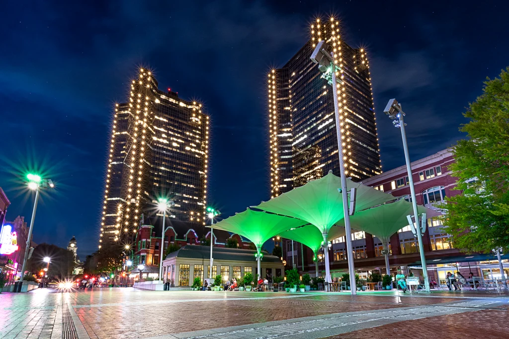 フォートワース(Fort Worth)のダウンタウンの中心に広がるサンダンス・スクエア(Sundance Square)。歴史的な西部建築の建物とモダンなデザインのビル群とが融合した37平方ブロックの商業とエンターテインメントの中心地です。全て徒歩でアクセスできるコンパクトなエリアには、ショッピング、レストラン、アートギャラリー、エンターテインメントなどが揃い、地元の人々や観光客で終日賑わいを見せています。
