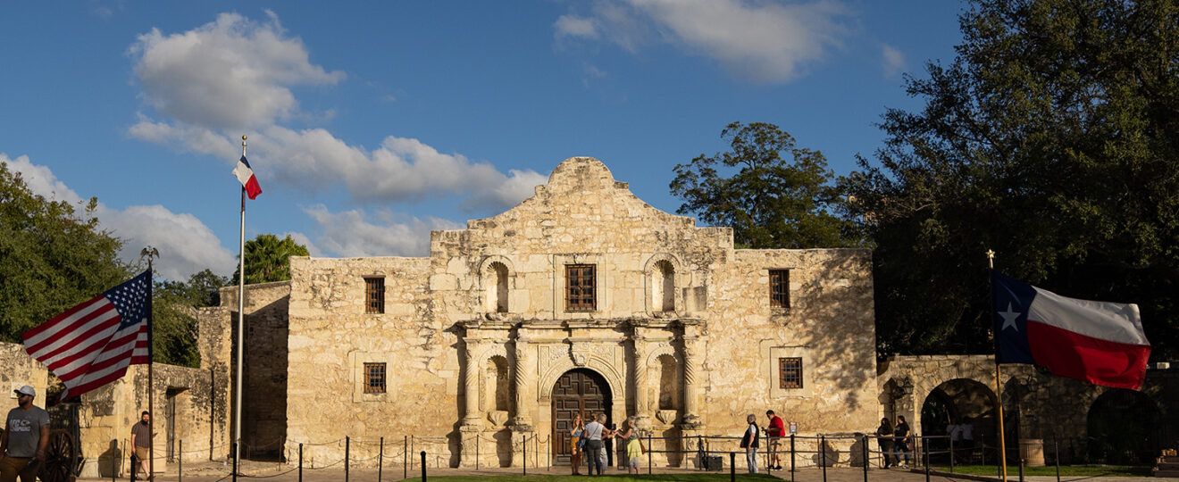 アラモは、サンアントニオ川の源流近くにスペイン人宣教師によって設立されたサンアントニオ・デ・バレロ伝道所というカトリック教会の伝道所がその始まりです。この地を襲ったハリケーンで大きな影響を受けたこの伝道所は1724年に現在の場所に移転し、そこに修道院が建設されました。その後、伝道所は“アラモ中隊”と呼ばれたスペインの兵士の駐屯地となります。なお、アラモの名前はこれに由来しているとされています。1821年以降スペインから独立したメキシコの支配下でメキシコ軍に占領されていましたが、1836年にメキシコからの独立を求めたテキサス分離独立派がここを占拠し、彼らの要塞(アラモ砦)となりました。そして、3月6日の夜明け、この砦を包囲していたメキシコの大軍が猛攻撃を仕掛け、アラモにいた200名にも満たないテキサス防衛軍の兵士全員がわずか90分間のうちに戦死するという凄惨な戦いが行われました。このアラモの戦いは、テキサスの人々の心に深く刻まれ、「Remember the Alamo(アラモを忘れるな)」というテキサス革命のスローガンとして語られています。メキシコからの独立後アメリカと併合しテキサス州となった後にも、アラモは米墨戦争や南北戦争などその後のアメリカの歴史と関わりを持つこととなります。