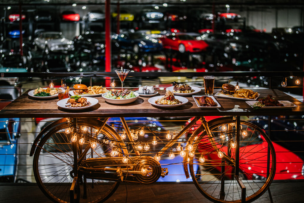 また、併設のレストラン「ダービー・レストラン・ヒューストン(Derby Restaurant Houston)」も注目です。ガラス越しにガレージを眺めながら食事ができるダイニング空間は、他では味わえないユニークな体験。誰でも利用できるレストランこのレストランは、南部らしいBBQやシーフード、季節の食材を使ったモダンアメリカンが提供されています。予約不要で気軽に立ち寄れるカジュアルさと、クラブの雰囲気を活かした落ち着いた内装が魅力です。